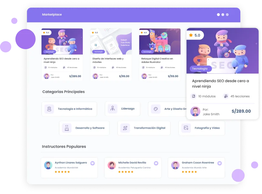Crea tu propia academia de cursos online o capacitaciones, con Sabio tienes tus propios logos, colores, dominio para crear una experiencia personalizada para tus usuarios.